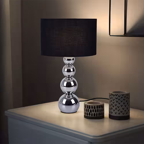 Les lampes de table avec abat-jour offrent une variété impressionnante de couleurs et de designs qui s'intègrent parfaitement dans différents types d'intérieurs. Pour une atmosphère élégante et moderne, une lampe de table en chrome avec un abat-jour textile noir et un variateur tactile à 3 niveaux convient par exemple parfaitement pour le salon ou la chambre à coucher.