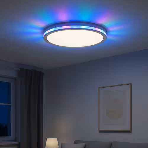 Les plafonniers LED plats avec changeur de couleur RGB permettent de créer une ambiance lumineuse qui s'adapte au moment. Choisissez entre un bleu calme, un rouge vital ou un violet créatif. La commande s'effectue confortablement via une application ou une télécommande.