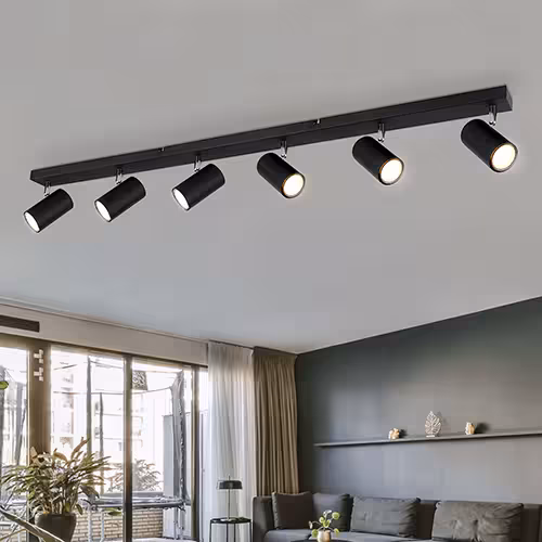 Ces modèles conviennent parfaitement aux grandes pièces. Plusieurs spots réglables répartissent la lumière de manière uniforme.