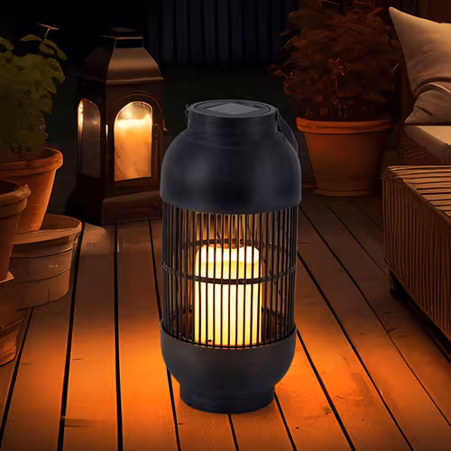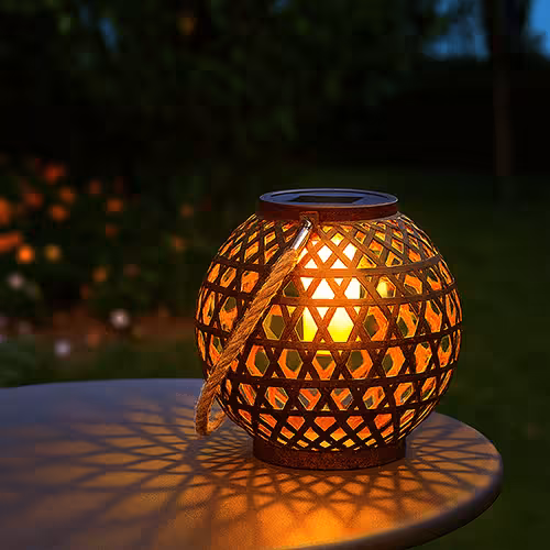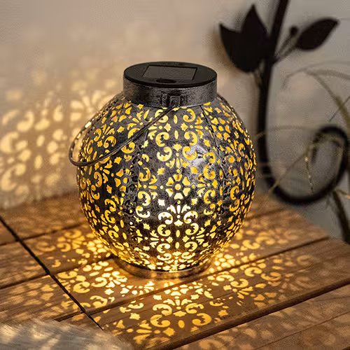 Les lanternes solaires existent dans de nombreux matériaux : acier inoxydable, plastique, bambou ou verre. Selon le matériau et la forme, un jeu de lumière différent est créé. Les modèles en métal avec des motifs ajourés projettent des ombres fascinantes.