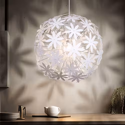 Que ce soit dans le salon ou dans la chambre à coucher, les suspensions artistiques et voyantes créent l'ambiance idéale. Une suspension ronde au design floral apporte ici un vent de fraîcheur dans vos quatre murs ! L'abat-jour blanc confère à la pièce une atmosphère douce et apaisante. Que vous soyez seul ou à deux, ce luminaire vous permettra de créer un lieu de détente.