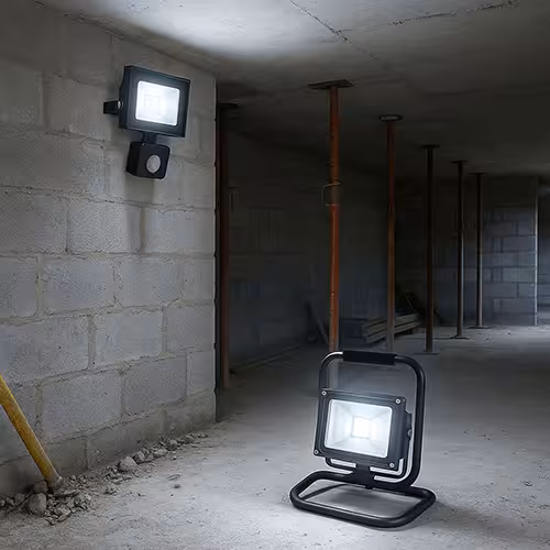 À l'intérieur, l'éclairage est souvent limité. C'est là que les projecteurs de chantier à LED compacts sur pied ou magnétiques sont utiles. Ils peuvent être positionnés près de la surface de travail. Les modèles avec batterie permettent de travailler sans fil - idéal pour les installations, la construction à sec ou les travaux de peinture. Le montage mobile vous permet de gagner du temps et de rester flexible.